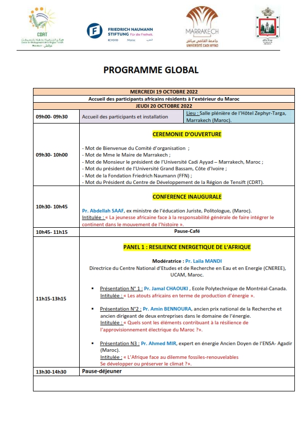 Thème: “Résilience énergétique, alimentaire et sanitaire pour l’Afrique : Quel rôle pour la société civile? “