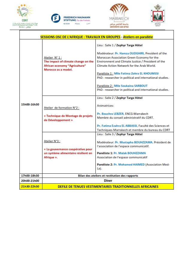 Lieu et programme du deuxième jour: Hôtel Zephyr Marrakech
