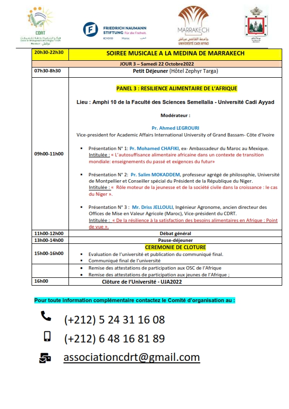 Lieu et programme du troisième jour: Faculté des Sciences Semlalia